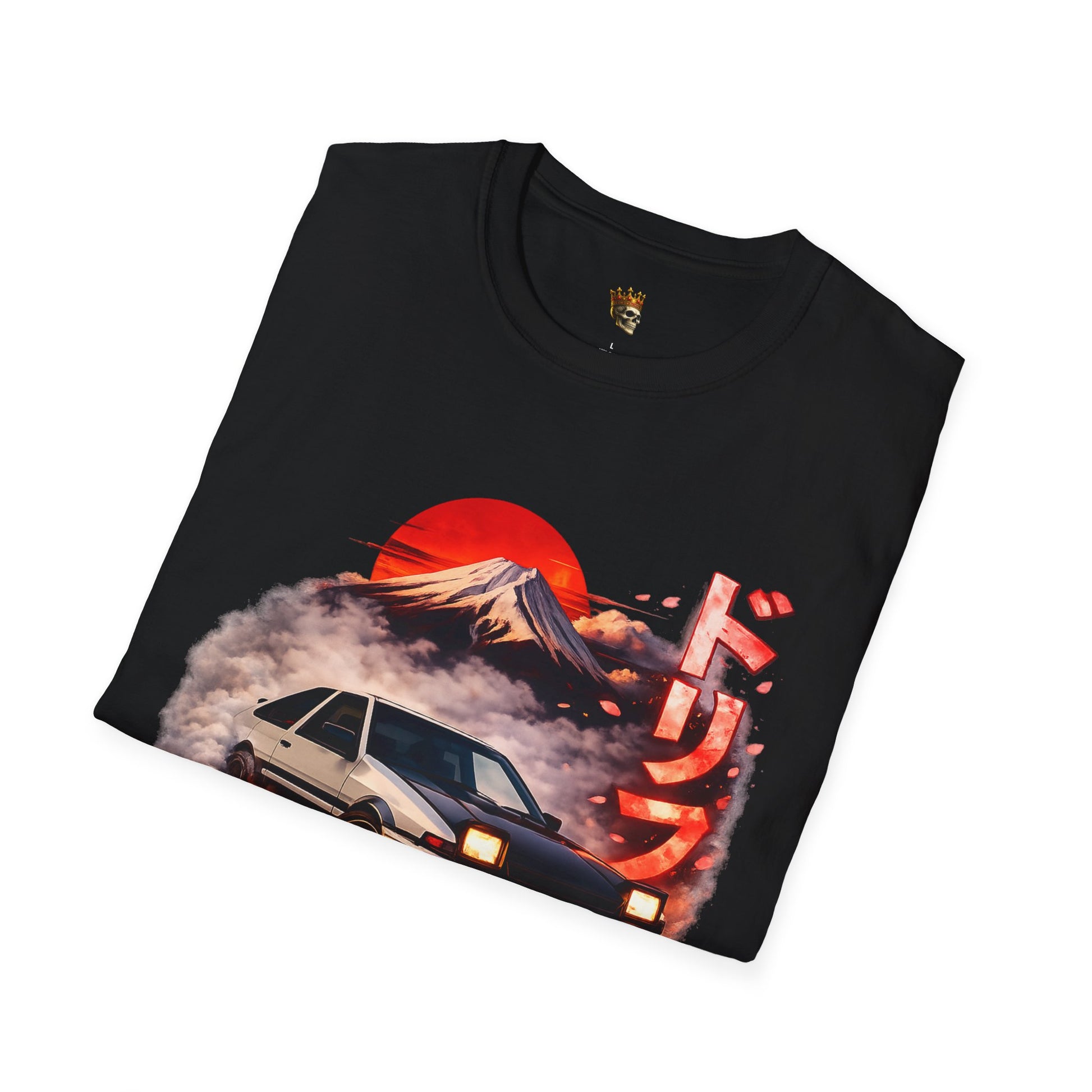 This tee channels late-night mountain roads and the crackle of turbochargers. A classic crew-neck silhouette carries a bold front scene: a vintage JDM coupe kicking up a plume of smoke against a blood-red sun and distant peaks. The back features a finely detailed enginescape, rendered like a mechanic’s sketch with restrained red accents. Lightweight, breathable cotton and a clean fit keep the shirt wearable all year — whether you’re tuning in the garage, meeting friends at a car meet, or sliding through canyon turns. It’s a wearable nod to old-school Japanese street culture and hands-on car life: raw, focused, and quietly proud.